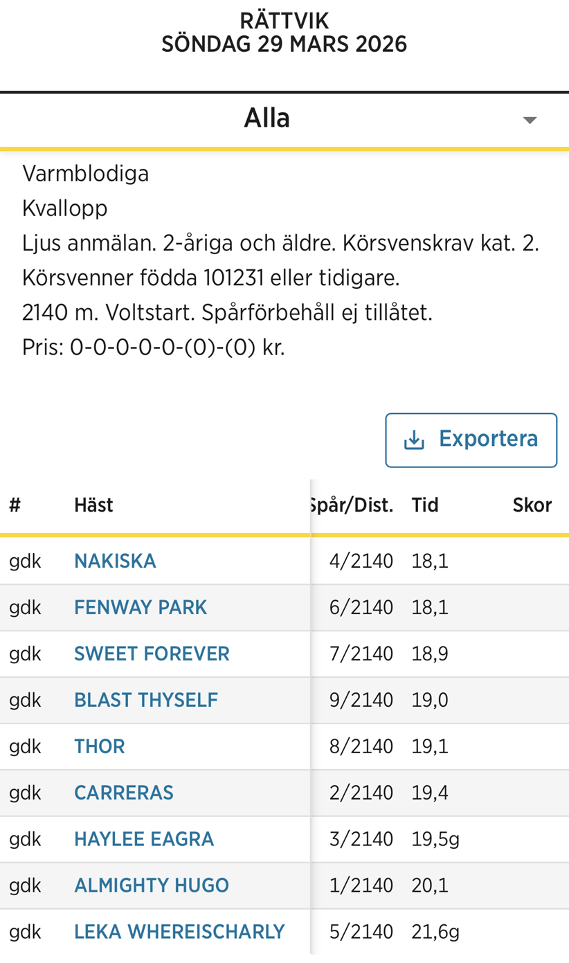 Nakiska overtog føringen ind i sidste sving – efter at have siddet i dødens store dele af rejsen – og “vandt” prøveløbet i tiden 1.18,1/2140 meter foran Walner-sønnen Fenway Park med Daniel Redén i samme tid.